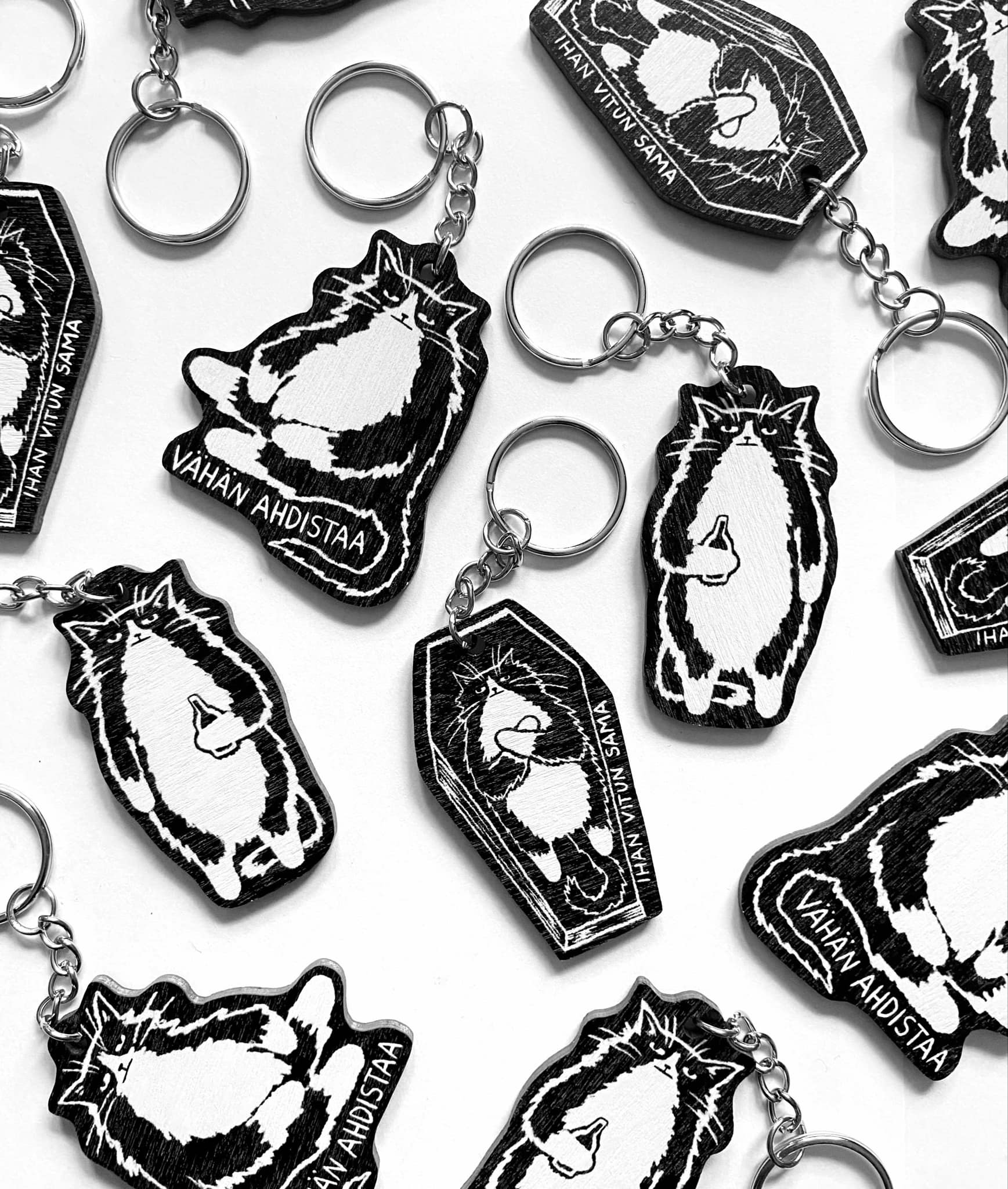 Avaimenperässä on sama kuva molemmilla puolilla. Avaimenperän kuva on käsitelty kestäväksi mattalakalla. Puinen avaimenperä kestää hyvin päivittäisessä käytössä.