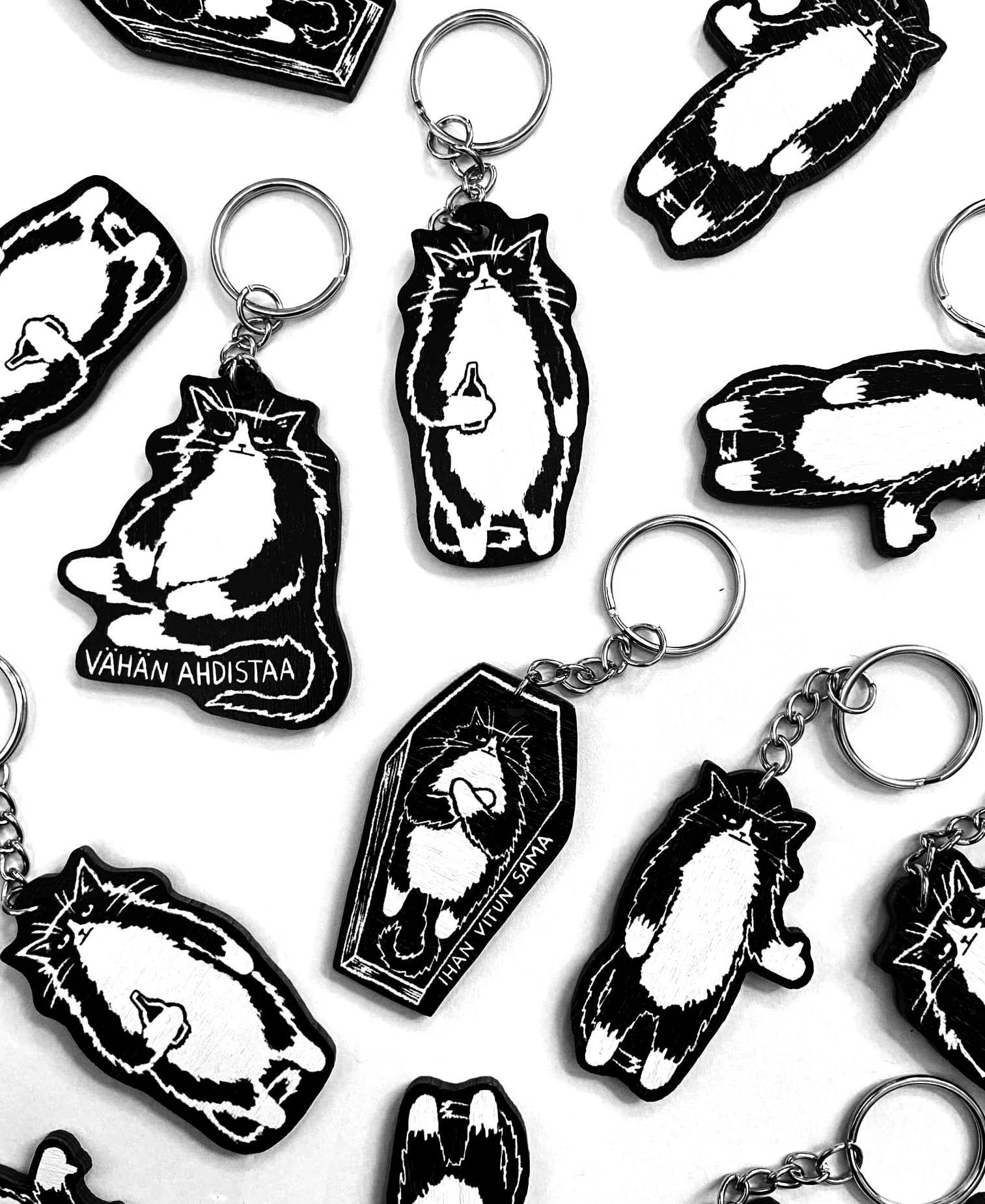 Avaimenperässä on sama kuva molemmilla puolilla. Avaimenperän kuva on käsitelty kestäväksi mattalakalla. Puinen avaimenperä kestää hyvin päivittäisessä käytössä.