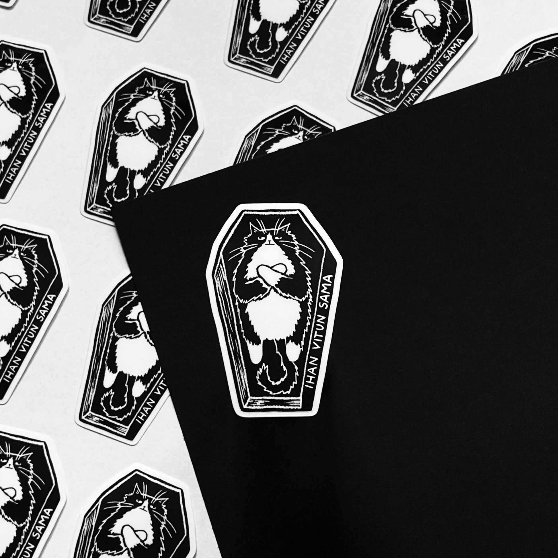 Kiiltäväpintainen tarra. Läpinäkyvät reunat. Koko 3,8 x 5,9 cm. Tarra on säänkestävä.