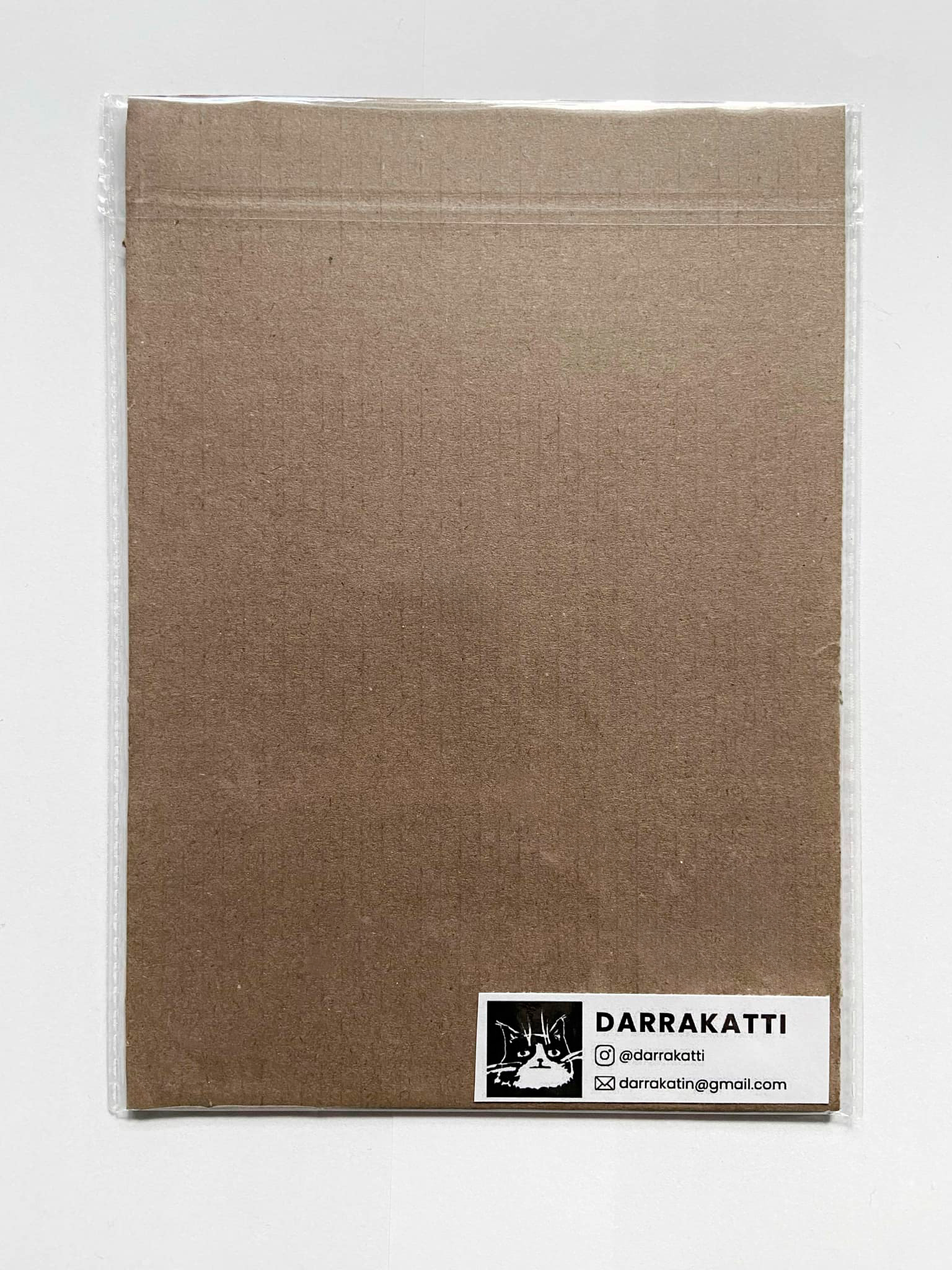 Pakattu muovitaskuun jossa taustapahvi.